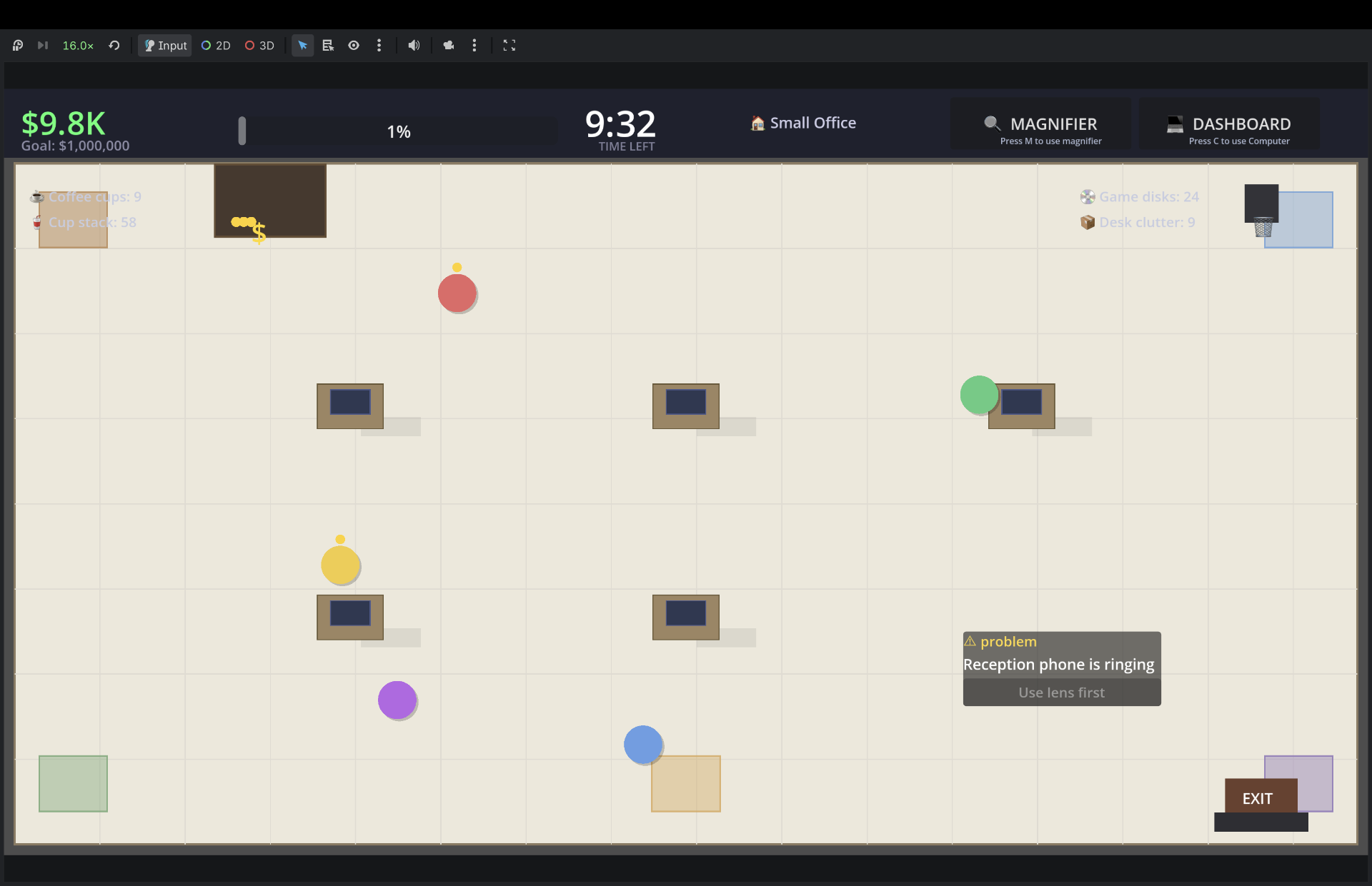 You Are Not Helping is a management game where you oversee a small office full of employees, problems, notifications, and money slowly piling up. You can zoom in and personally handle every small issue, move sliders, fix problems, and optimize everything. But the more you interfere, the more you become the thing every office fears — a micromanager.